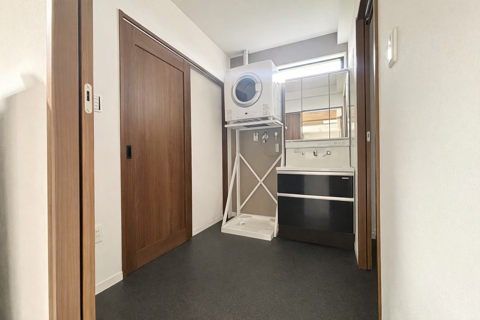 乾燥機・クローゼット付きの洗面脱衣所、各個室も収納付きで明るいお部屋。
